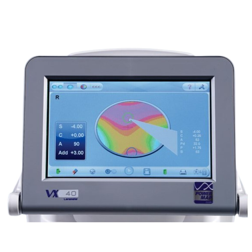 VX40 може да анализира до 1350 точки. Той открива и анализира бифокални, прогресивни и единични лещи и е съвместим с всички технологии и марки за лещи.